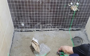 바닥은 모서리 부분을 반듯하게 미장해 바닥 타일 시공 라인을 잡아 남은 벽체는 타일 시공으로 꼼꼼하게 마감합니다.300*600 벽타일 모서리는 코너비드를 올려 마감…