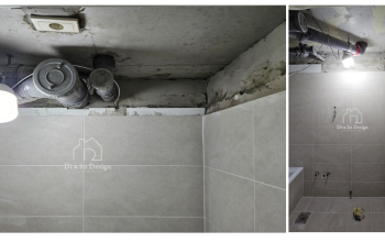 화장실 두 곳의 천장은 평판 돔 천장으로 준비해시공을 진행해 드렸습니다.평돔천장은 심플한 디자인이 적용되어깔끔하고 세련된 분위기를 더해줍니다.타일 맨 위 상단부에 올려 시공을 진행…