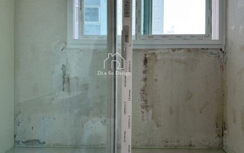 바닥과 함께 샷시 하단 부분도 동일한 마감재로 메지 라인을 맞춰 시공해 반듯한 라인이 돋보이는 깔끔한 분위기를 연출했습니다.화이트 메지를 적용해 깔끔하게 마감한 뒤 현장 …