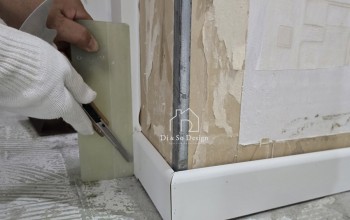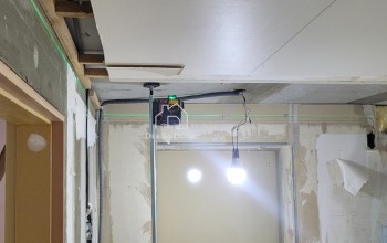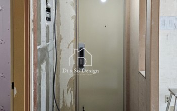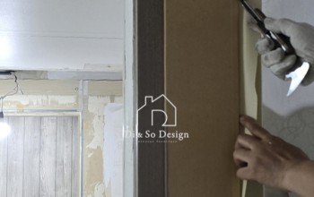 거실과 연결된 천장은 석고보드 취부로 평탄화 시공을 진행해 줍니다.ㄱ자 가벽 작업을 세우는 기초작업을 해주는데요.현관 중문 설치 시 면밀하게 실측을 해주고ㄱ자 …