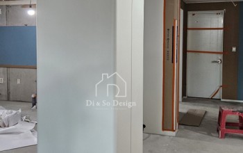 프라이머 도포 후에는 지정된 인테리어 필름 시공이 본격적으로 시작됩니다.심플하고 깔끔한 스타일을 선호하신 고객님께서는 영림 PS120 도장 백색을 선택해 주셨는데요.톤 다운…