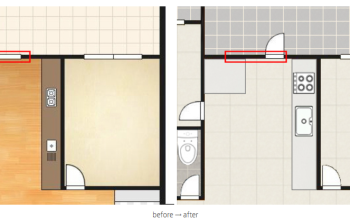 주방 공간을 효율적으로 활용하기 위해주방 옆방 미닫이문을 가벽을 세워 여닫이로 변경해 주고 다용도실 분합창에도가벽을 세워 터닝 도어를 시공해 주었습니다.가벽이 생성된 공…