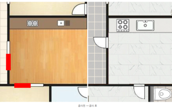 기존에는 주방으로 연결된 다용도실과 침실이 각각 분합창과 미닫이 도어 구조로 되어 있어 공간 활용도가 떨어지는 상태였습니다.이번 공사에서는 구조를 전반적으로 재정비해 동선 효율성…