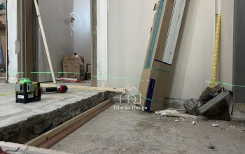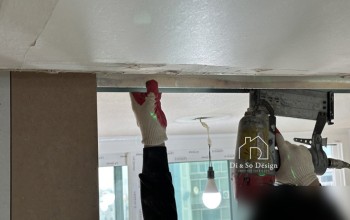 기존 구조는 오픈형의 다소 좁은 현관으로 외부 시선이 바로 실내로 이어졌습니다. 공간 효율성과 프라이버시를 동시에 확보하기 위해 가벽을 새롭게 세우고 3연동 중문을 설치하여 현관과…