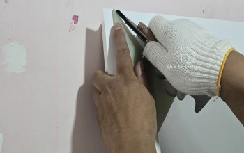프라이머를 도포한 뒤 준비된 인테리어 필름을 창틀에 맞춰서 반듯하게 래핑 작업을 시작해 주고요.창틀 모서리 부분은 사선으로 깔끔하게 커팅 해줍니다. 길고 얇은 프레…